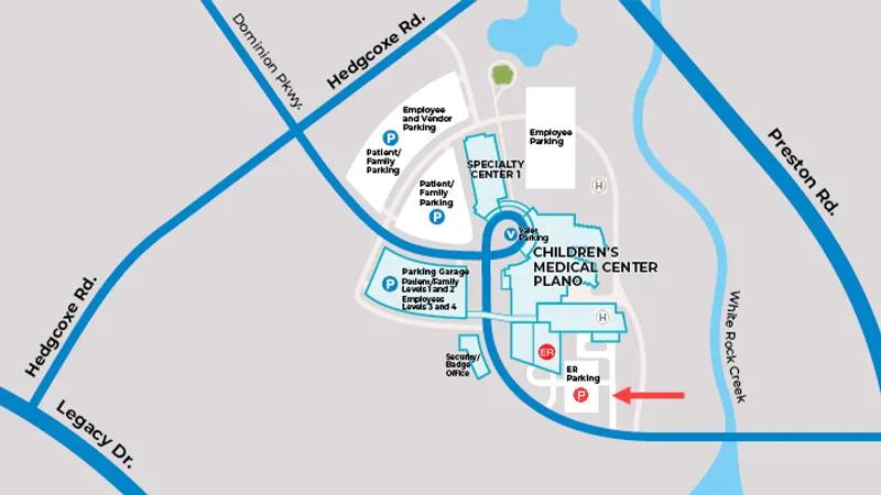 Emergency room patient parking is available in the lot adjacent to the emergency room entrance. Patient and family parking is also available in the Specialty Center 1 Plano parking lot and on the first level of the parking garage adjacent to the hospital.